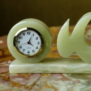 Bring add timeless elegance to your workspace with this handcrafted marble desk clock in White Onyx Marble with beautiful Style to decorate in your office and Home and will be ready with more different colors which are Oceanic,Ziyarat white,Green onyx,Verona,jet black,Coral and many more as per your requirements. . Made from genuine natural marble, each piece features unique veining, making every clock one-of-a-kind. Its compact size and minimalist design make it perfect for office desks, shelves, or bedside tables—blending classic style with modern functionality.
