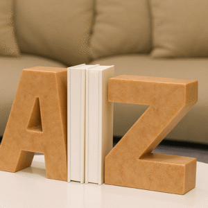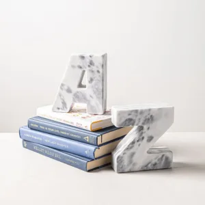 - Organize Your Shelf with Style and Sophistication with Marble A-Z Bookends. Crafted with precision and creativity, each bookend features a sleek and modern design. The letter “A” and “Z” are meticulously sculpted to provide a stable base for your books, ensuring they stay upright and aligned with finesse.