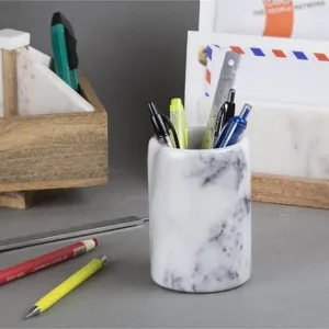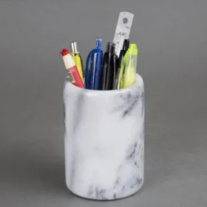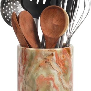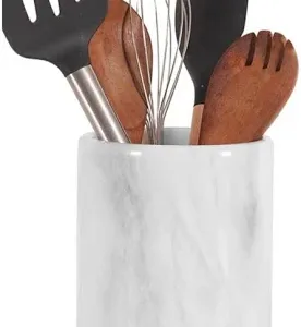 Marble Utensil Holder for Kitchen Countertop – Stationery Jar | Modern Stone Cooking Tool Organizer – White Spoon Crock – Minimalist Kitchen Decor