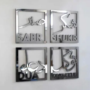 Spiritual Quartet: A set of four individual pieces each featuring one of the powerful Islamic concepts: Sabr (patience), Shukr (gratitude), Dua (prayer), and Tawakkul (trust in God).